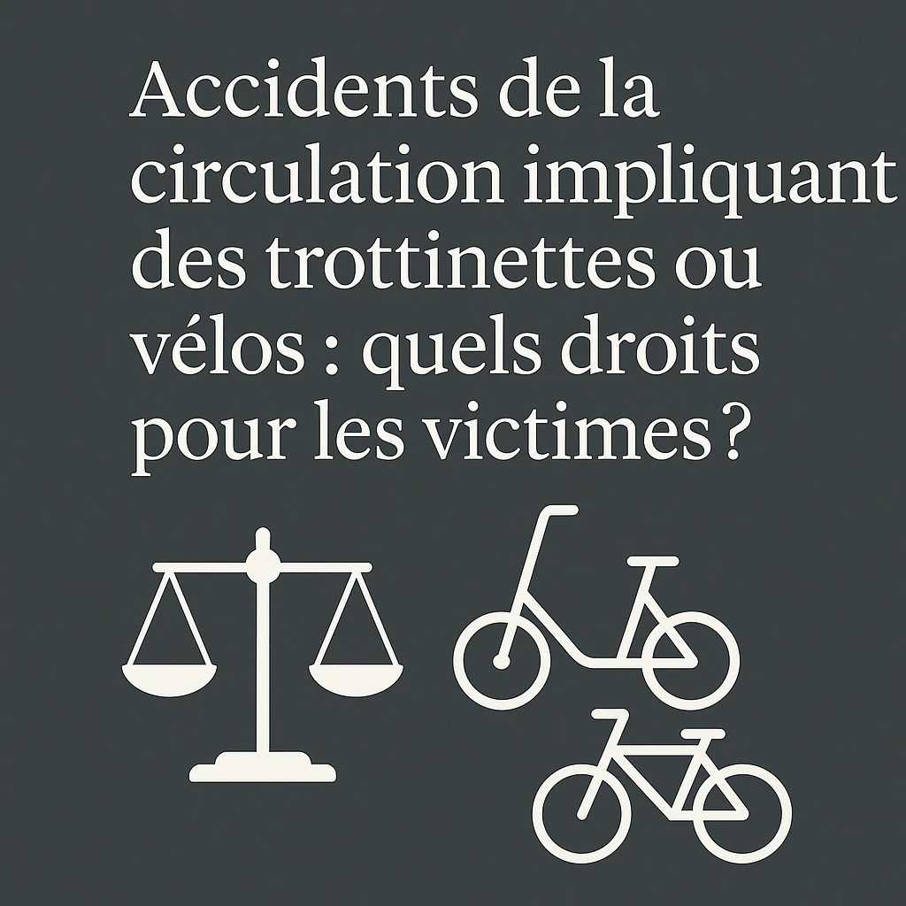 Les accidents de circulation impliquant des trottinettes électriques ou des vélos sont de plus en plus fréquents, surtout en ville. Que vous soyez piéton, cycliste ou conducteur de trottinette, il est essentiel de connaître vos droits en cas de blessure. Voici ce qu’il faut retenir.